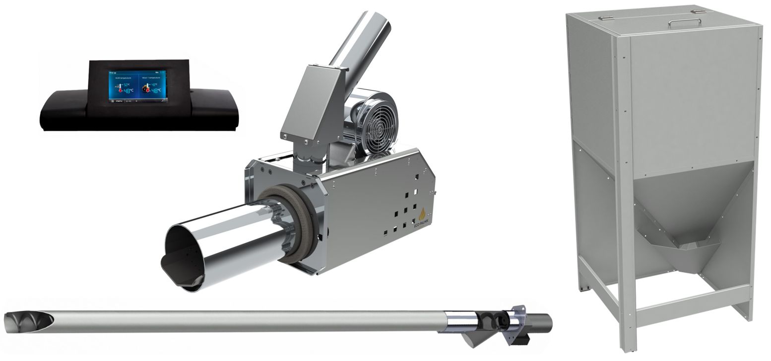 Komplektis on põleti, automaatika ja etteandetigu 1,5 m